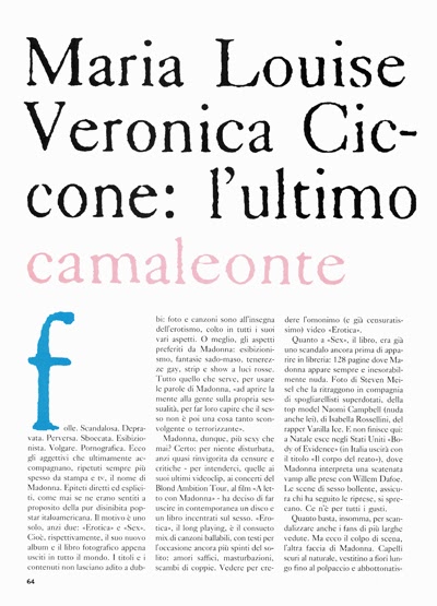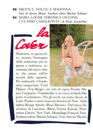 En noviembre de 1992, Madonna aparece en las portadas de las edición de Italia de la revista «Glamour». El portfolio utilizado fue el mismo tomado por Steve Meisel para la revista «Vanity Fair» USA de octubre del mismo año. La misma edición se lanzó en Francia.