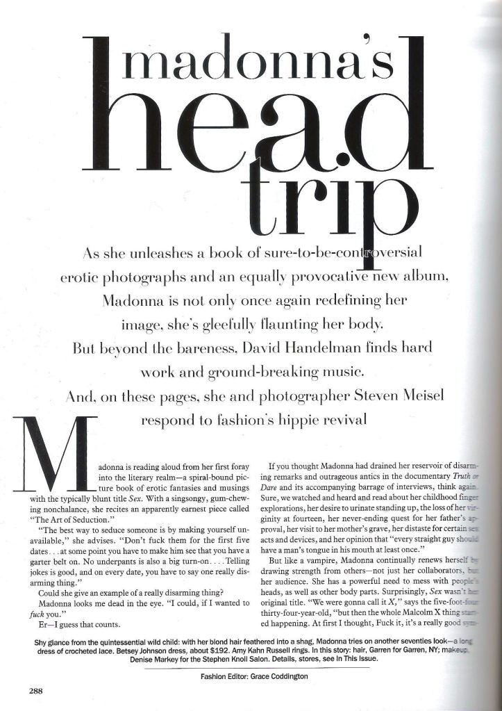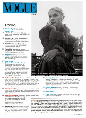 Madonna en la edición de octubre de la revista «Vogue» (USA) fotografiada por Steven Meisel con estilismo de Grace Coddington. El mismo portfolio se usó para la edición «Vogue» (Italia) lanzada en noviembre y en escenas del clip «Deeper and Deeper».