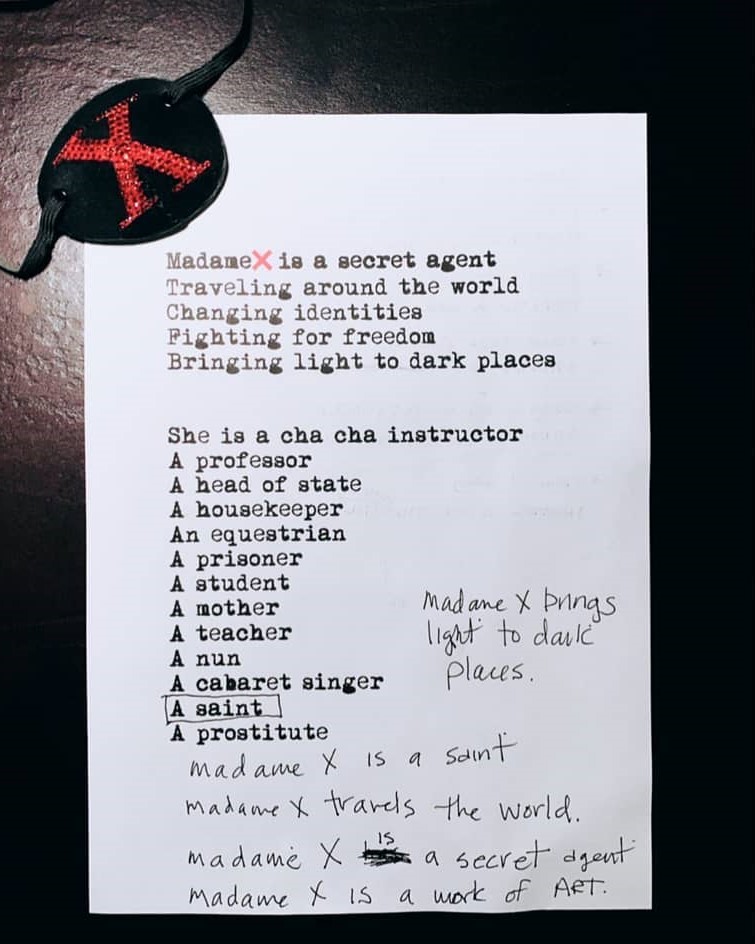 - El nombre del disco está inspirado en la obra de teatro homónima de Alexandre Bisson (1908) y es además, el apodo que una de sus profesoras de danza, Martha Graham llamaba a la joven Madonna durante los primeros años en New York. Según la cantante, la bailarina supo decirle: «voy a ponerte un nuevo nombre: Madame X. Todos los días vienes a clases y no te reconozco. Todos los días cambias de identidad, eres un misterio para mi». De esta manera, surgió el personaje «Madame X» quien se presentaba con un manifiesto con el que Madonna se mostraba en las redes sociales: «Madame X es una agente secreto. Viaja alrededor del mundo. Cambiando identidades. Luchando por la libertad. Trayendo luz a lugares oscuros. Es una bailarina. Una profesora. Una jefa de estado. Una ama de casa. Una amazona. Una prisionera. Una estudiante. Una madre. Una niña. Una profesora. Una monja. Una cantante. Una santa. Una zorra. Una espía en la casa del amor Yo soy Madame X».