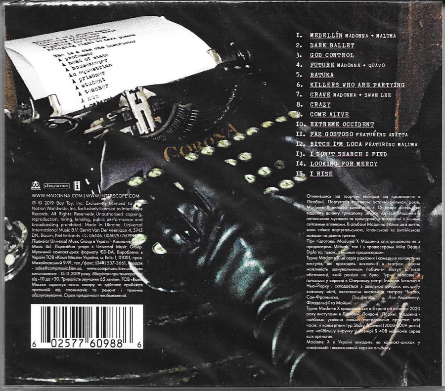 - «Madame X» es el disco N°14 de Madonna lanzado a nivel mundial el 14 de Junio de 2019.