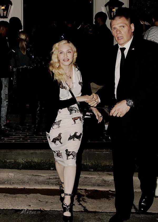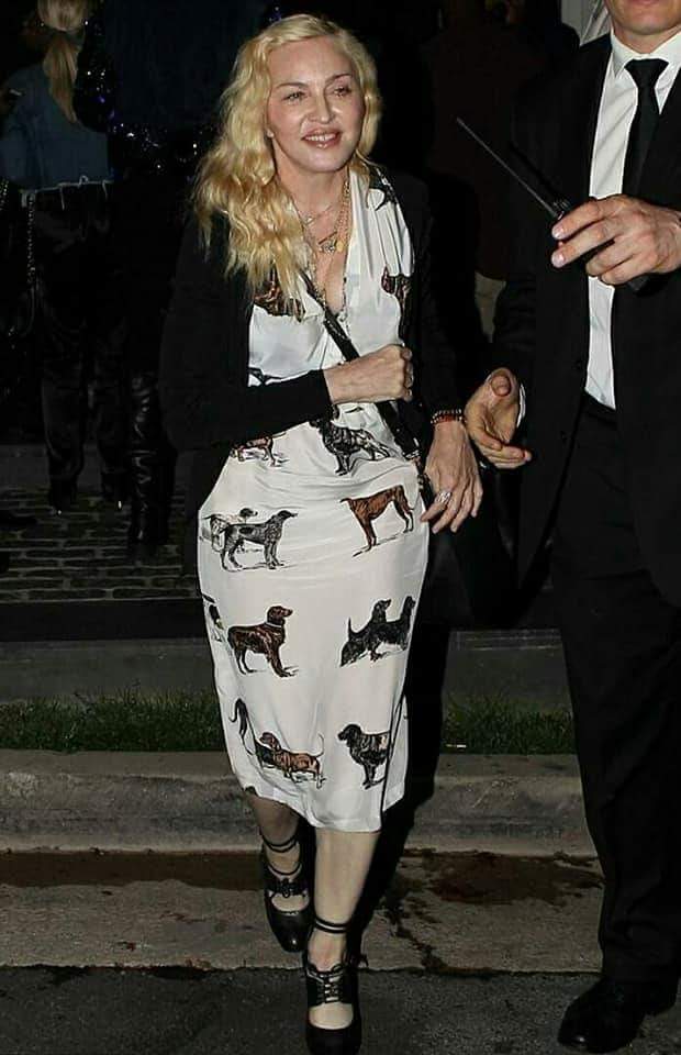 La noche del miércoles 21 de junio de 2017, Madonna concurrió, acompañada de su asistente a la fiesta del cumpleaños N°50 del rapero Sean Combs, también conocido como P Diddy. El evento se llevó a cabo en la mansión del cantante en Los Angeles. Madonna lució un vestido largo por debajo de las rodillas en color blanco con un estampado de perros, un cárdigan negro y sus zapatos hechos a medida.