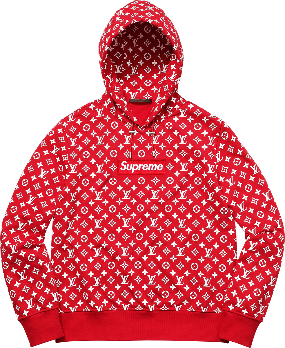 «Supreme» hoodie rojo por Louis Vuitton.