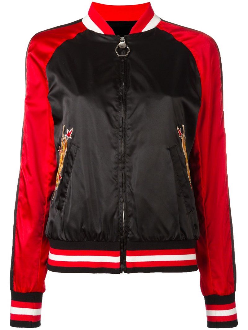 Chaqueta roja y negra con apliques Phillip Plein Bomber Jacket.