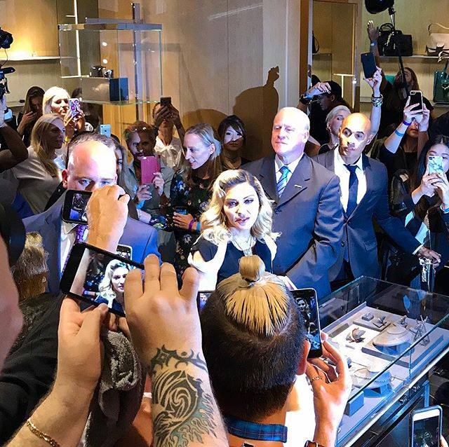 Luego, Madonna se dirigió a las grandes tiendas de «Barney’s» ubicada en el N°488 de la Av. Madison en Manhattan. La cantante se tomó su tiempo para hacer un cambio de vestuario y realizar un ingreso impactante por las puertas principales de la tienda, luciendo un ajustado vestido rojo. Allí, posó para los cientos de fotógrafos junto a los exhibidores que mostraban toda la nueva línea de productos que comenzarían a venderse en la cadena de tiendas. En sus redes sociales Madonna comentó: «entrando a Barnye’s como la jefa».