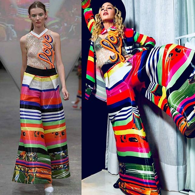 - Pantalones anchos de seda estampado rayado modelo «Arcoiris» de Fyodor Golan.