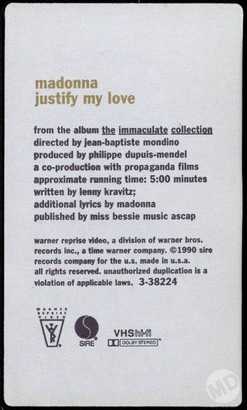 En USA el VHS se comercializó en una funda de cartón negra con un sticker para simular un video “de baja calidad” (al estilo de los videos pornográficos). Mientras que en Europa se editó en caja plástica, con un diseño y un arte muy similar al del single y además se agregó el video de la actuación de “Vogue” en los MTV VMA 1990; irónico ya que fue la MTV quien prohibiera a “Justify My Love” en primer lugar. En UK, fue catalogado como «18» por la BBFC (prohibido para menores de 18 años); mientras que en Australia y Nueva Zelanda fue catalogado como «M» (prohibido para menores de 16 años) debido a sus escenas de sexo y erotismo. El video de «Justify my Love» se editó de manera exclusiva en formato VHS, recién en 2009 (19 años después del lanzamiento del video), se lanzó en versión DVD formando parte de la colección «Celebration», aunque con algunas escenas de desnudos censuradas con barras negras.