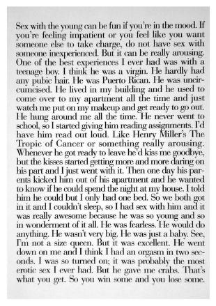 - En 2011, a casi 20 años de su lanzamiento, «Sex» ha llegado a estar N°01 en el lista anual de los «Libros más buscados» por Bookfinder.com; seguido por «Promise Me Tomorrow» de Nora Roberts y «Rage» de Stephen King.