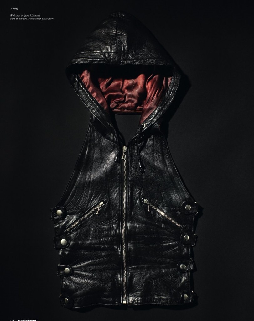 En 1990 Madonna adquirió una prenda que sin lugar a dudas fue su favorita durante ese año y los siguientes: un chaleco de cuero del diseñador John Richmond. La pieza consiste en un chaleco de cuero negro con cremallera al frente y dos bolsillos en diagonal, presenta abotonadura en los laterales y capucha está forrado con tela de satén rojo. Se dice que Madonna adquirió esta prenda en la tienda Maxfield’s en Melrose, Los Angeles para su uso personal, pero sin quererlo el chaleco se hizo famoso de la noche a la mañana. A principios de ese año, Madonna estaba realizando una sesión de fotos con Patrick Demarchelier, encargada por le revista «Glamour» para la edición de diciembre de ese año. Finalizado el trabajo, Madonna se cambia con su ropa de calle (había llegado al lugar con el chaleco de cuero, una gorra y unos pantalones del mismo material y color). Sus labios lucían muy prominentes debido a la reciente aplicación de colágeno. Al verla, Demarchelier le pidió realizar más fotografías con este look. Madonna hizo lo suyo y una de estas fotos pasó luego a ilustrar la portada del single «Justify My Love». La imagen es impactante, no solo por la crudeza y dureza de la imagen, una Madonna cuya gorra tapa sus ojos, labios carnosos, cigarrillo y ropa de cuero, una pose masculina con ciertas reminiscencias a los personajes de fetiche gay «Tom of Finland». La foto se se volvió icónica de inmediato.