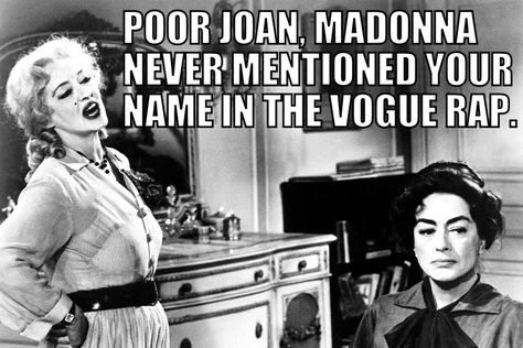 En los últimos tiempos, y con el surgimiento de Internet, comenzaron a realizarse una serie de «memes» haciendo alusión a la gran omisión de otra grande de la época de oro de Hollywood, Joan Crawford. Uno de ellos muestra una escena del film «Whatever happened to Baby Jane» con el texto: «pobre Joan, Madonna nunca mencionó su nombre en el rap de ‘Vogue'» y en vemos un diálogo imaginario entre Crawford y Madonna en donde la estrella pregunta: «¿Porqué mi nombre no se menciona en el rap de ‘Vogue’?»; a lo que Madonna contesta: «porque no soy uno de tus fans».