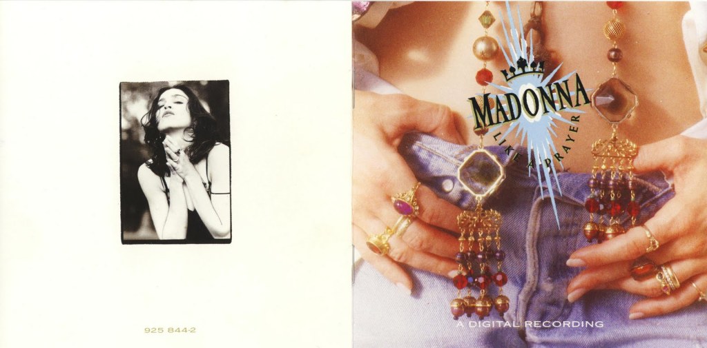 El disco fue titulado «Like a Prayer» («Como una plegaria») como la canción principal y para hacer referencia al catolicismo y a la vida cristiana que tanto había influido en la niñez de Madonna. Todo el concepto del disco, en cuanto a la música, las letras y la temática tienen que ver con la visión de Madonna sobre la religión y su vínculo con la Iglesia. El arte y el diseño del disco tenían que estar acorde a dicho concepto. Esta fue, además, la primera tapa en no mostrar una imagen de Madonna (en cambio sí vemos su abdomen y ombligo). Con esto, se quería destacar la importancia que daba la cantante al hecho de que fuera tomada realmente en serio como artista y que su música fuera más importante que la imagen. Sólo en la parte trasera y en el interior del disco podemos ver fotos de Madonna con el cabello moreno, contrastando con el impactante rubio que había mostrado en discos anteriores.