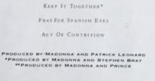 Un ejecutivo de la Warner comentó: «ella quería crear una estilo de los 60s y de la Iglesia. Ella quería crear una sensación sensual que se pueda oler y tocar». Es por eso que todas las primeras ediciones del disco tanto vinilos, casettes o CDs venían impregnadas en esencia de “Patchouli” (la favorita de Madonna) y que nos recuerda mucho al incienso de las iglesias. Hay que destacar que en la actualidad, algunos de estos discos todavía mantienen el aroma. Una curiosidad, las primeras ediciones del disco (tanto en vinilo como en CD) nombraban la canción N°10 como «Spanish Eyes», sin embargo, a partir de ediciones sucesivas, este título fue cambiado al que se conoce en la actualidad «Pray for Spanish Eyes», el motivo es aún desconocido pero probablemente se trate de una mala impresión en las ediciones iniciales que fue luego corregida. Una tercera edición, más rara aún fue realizada en Brasil, en donde la canción se tituló «Spanish Eyes (Tears on my Pillow)».