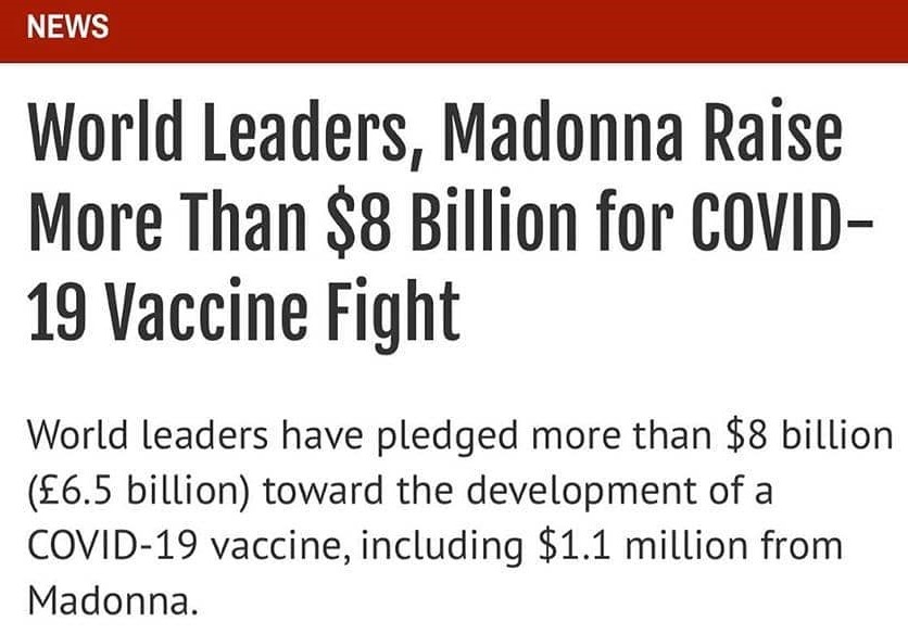 A propósito de esto, el 08 de Mayo de 2020, se publicó un artículo por «Indy100 – The Independent» en donde se refería a la cantidad de dinero que Madonna había donado a la causa de la lucha contra el COVID-19; cantidad suficiente como para que la cantante pudiera ingresar como miembro de la Unión Europea. A continuación, el artículo.