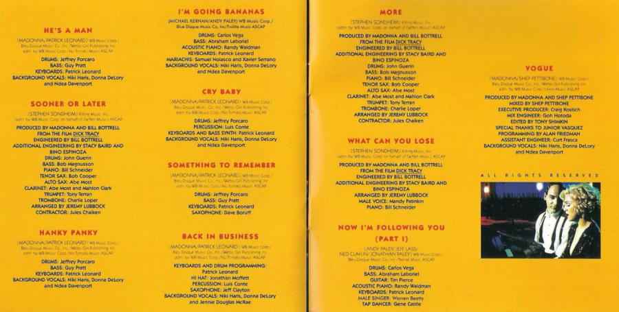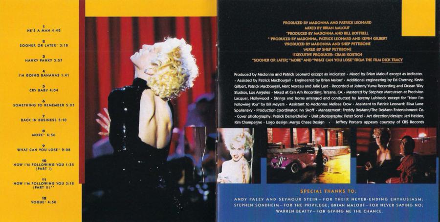 El CD incluyó un pequeño booklet a color con algunas fotografías de la película «Dick Tracy» y los créditos de las canciones más no se incluyeron las letras.