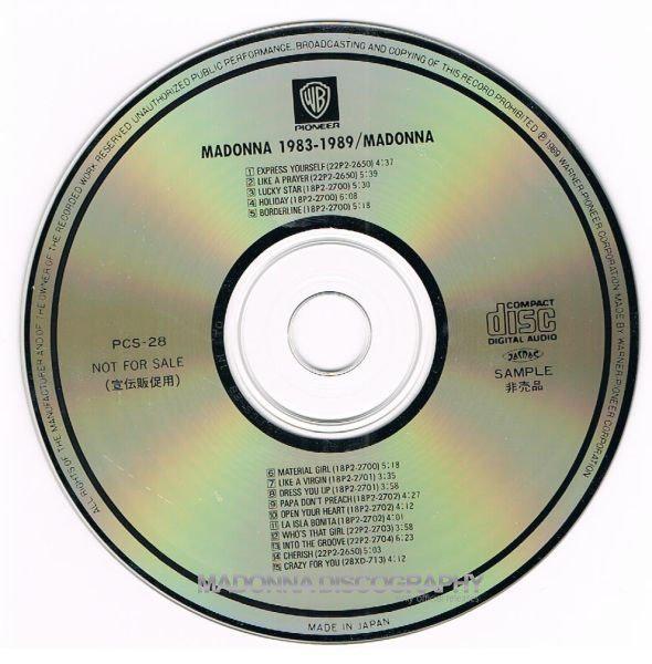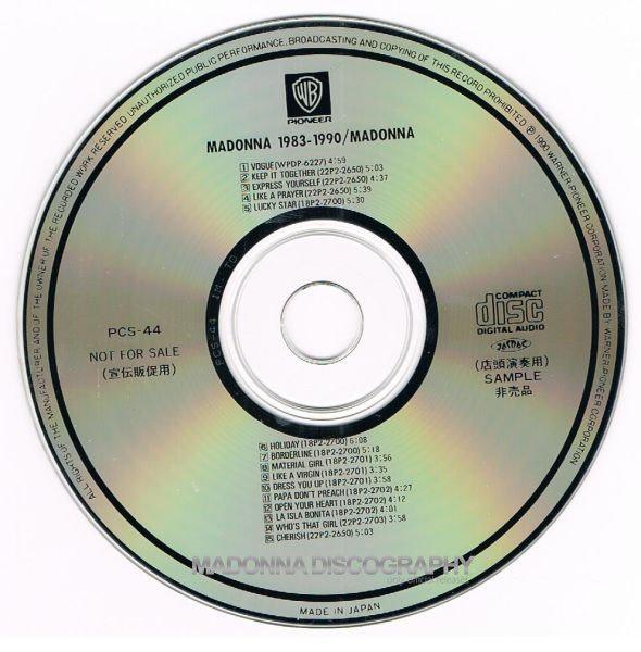 Como ya sabemos los items de manufactura japonesa siempre fueron los más buscados por los coleccionistas, no solo por la calidad de sus productos (en los que hasta los artículos promocionales lucen como oficiales) sino además por su originalidad y rareza. Warner Pioneer Corporation siempre ha estado a la orden del día para promocionar a una de sus más grandes artistas y gracias a esta política podemos encontrar verdaderas joyas para cualquier fan. Así fue como después del mega éxito de «Like a Prayer», la Warner Japan decidió que era momento de realizar su propio recopilatorio de grandes éxitos para promocionar a Madonna entre los Djs, las radios y las tiendas de música. Aprovechando además el inicio del nuevo formato en música, el CD, se lanzó una colección de hits titulado simplemente «1983-1989» que reunía los mejores temas del catálogo de Madonna desde su primer disco «Madonna» (1983) a «Like a Prayer» (1989). Y un año más tarde, con el impresionante éxito de «Vogue», esta colección tuvo se re-edición para incluir a esta nueva canción, con el título «1983-1990». Como dijimos, la calidad de estos productos era excelente y casi podrían pasar como artículos oficiales.