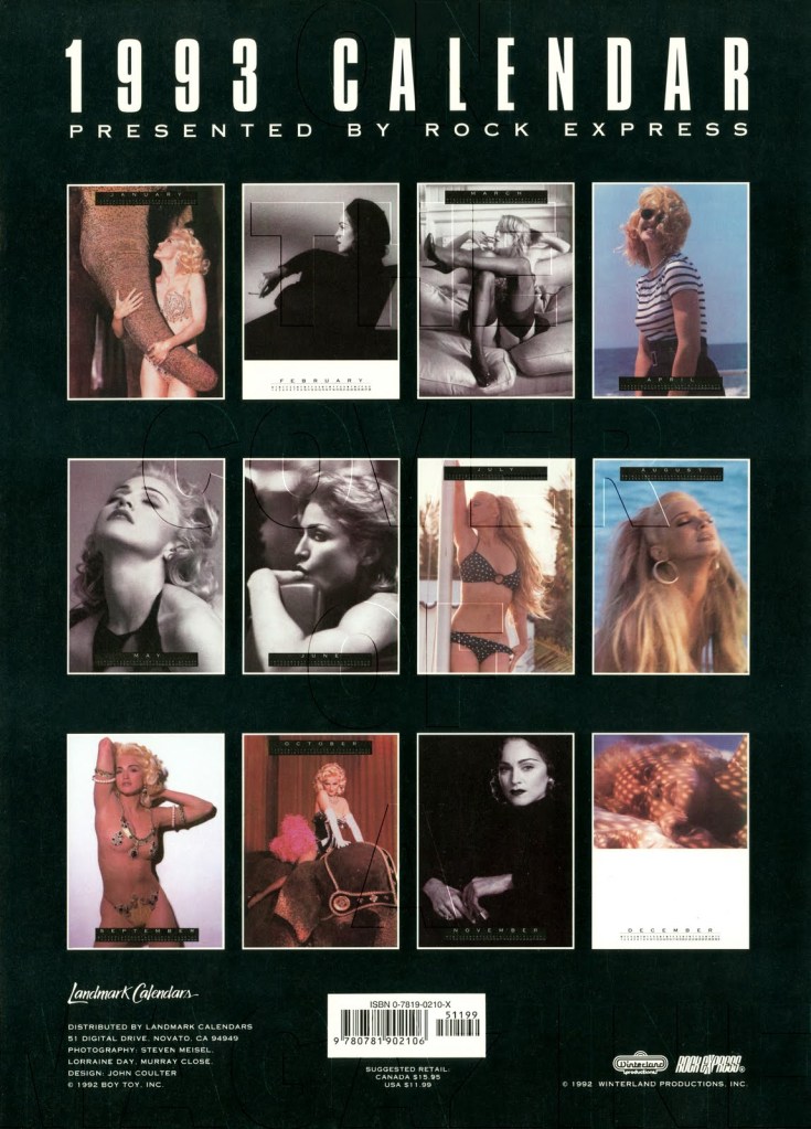 En el segmento memorabiblia de cada año, comenzamos como siempre con el calendario oficial 1993. Producido por la compañía inglesa Danilo en conjunción con Boy Toy Inc., el fabuloso calendario sigue el mismo diseño y estructura que las ediciones de años previos. En formato vertical de 16″ x 12″ incluye 12 impresionantes fotografías de Steven Meisel de la campaña de publicada «Japan Pure», el comercial MTV 10, el video «This Used to be My Playground» y el libro «Sex».