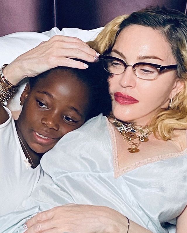 El domingo 24 de Mayo de 2020 Madonna ha subido unas fotos a su cuenta de Instagram mostrando un poco vida íntima en estos últimos días. Como sabemos, la cantante se ha estado sometiendo a una serie de tratamiento de regeneración de cartílago en su cadera y rodilla lo que le estaría generando cierto alivio. Así se la vio en las fotos, en su cama junto a su hija Estere, mirando el documental de Michelle Obama mientras se realizaba la terapia de rehabilitación. Madonna escribió: «Domingo de Cuidado: mirando el documental de Michelle Obama ‘Becoming’ with Estere, a thera gun y una taza de té».