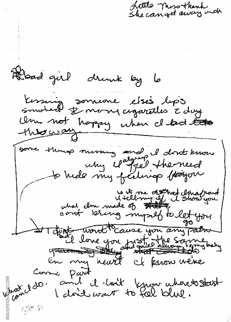 - En el video, Madonna interpreta a una mujer llamada Louise Oriole (Louise es su segundo nombre y Oriole es el nombre de la calle en Los Angeles en donde ella compró su primera casa luego del divorcio con Sean Penn).