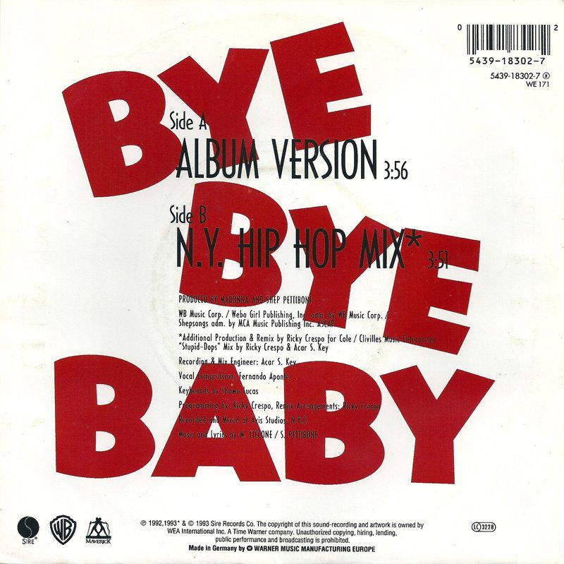 - «Bye Bye Baby» fue el quinto y último single del disco «Erotica» lanzado a nivel internacional, ya que no fue editado oficialmente en USA.
