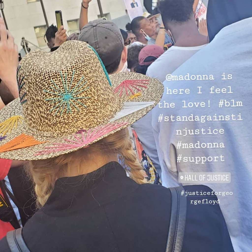 Días más tarde, Madonna se trasladó a los Estados Unidos para pasar el verano y otra vez pudimos verla en público en otra marcha del movimiento contra el racismo. En esta ocasión en Los Angeles, el miércoles 10 de junio. La cantante asistió acompañada de su novio, el joven bailarín Ahlmalik Williams y comentó: «Cada miércoles en los últimos años el movimiento Black Lives Matter L.A, se reunieron frente al City Hall para solicitar la renuncia de Jackie Lacey y llorar junto a las madres la pérdida de sus hijos por la brutalidad policial. Les pido que se unan a ellos el próximo miércoles y todos los miércoles; como lo hice hoy y tuve el honor de encontrarme con estos dos apasionados activistas @janayathefuture y @kendrick38. Lloré por dos horas sintiendo la agustia de las madres quienes hablaron pero al mismo tiempo ví esperanzas en los líderes de esta generación».