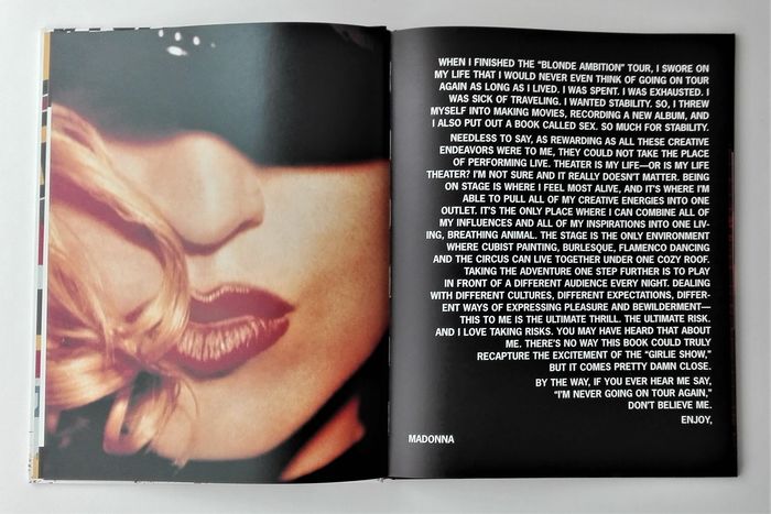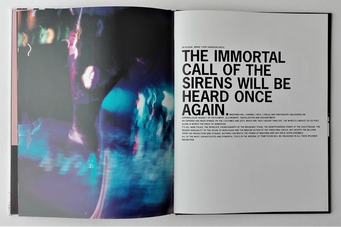 - El libro se editó en tapa dura, formato grande de 10″x13″ y contiene 70 páginas con fotografías a color de la gira y algunas tomadas por Herb Ritts para la promoción del tour; además de un prólogo realizado por Madonna y textos que acompañan las imágenes y que muestran el espíritu del show.