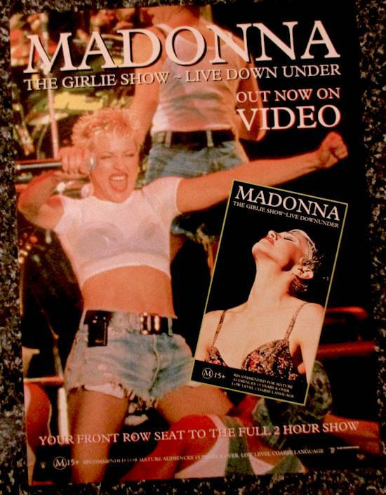La gira se editó inicialmente en formato VHS y Láser Disc que se editó en todo el mundo con el título «Madonna – The Girlie Show: Live Down Under» haciendo referencia a la locación de Australia en el mapa. El diseño era bastante sencillo, en la tapa se mostraba una foto de Madonna con corpiño floreado durante la interpretación de «In this Life» en la contratapa una imagen de «Everybody»; el fondo era negro con tipografía tipo románica blanca. Este mismo diseño se utilizó en todos los países en que se editara el video sin ninguna variación y se adaptó para los diferentes formatos físicos: VHS, Láser Disc y DVD. Tanto el VHS como el LD se lanzaron a la venta el 26 de Abril de 1994 y estuvo dirigido por Mark «Aldo» Miceli quien habría dirigido las grabaciones de «The Blond Ambition Tour» (1990) y la realización del Láser Disc de esta gira para Japón. «The Girlie Show: Live Down Under» debutó en varias listas de la revista Billboard en 1994: «Top Video Sales» en el N°13 y «Top Laserdisc Sales» en el N°12. En la lista «Top Music Videos» se coloco en la posición N°03. En 1995, fue nominado a un premio Grammy en la categoría de «Best Long Form Music Video», pero perdió ante U2 y su video de la gira “Zoo TV: Live From Sydney”. En 1998, este video fue uno de los primeros en ser lanzados en formato DVD pero sin ningún material extra.