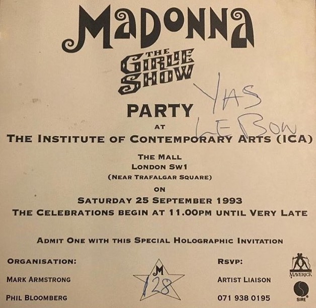 Luego de la primera noche en el Estadio Wembley, se organizó una fiesta de bienvenida en el «Institute of Contemporary Arts» de «The Mall» en Central London a la que Madonna concurrió por breves minutos.