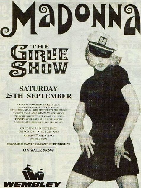 Para dar inicio a su gira «The Girlie Show», Madonna arribó a la ciudad de Londres al Aeropuerto de Stanstead el jueves 21 de Septiembre de 1993. Se dirigió de inmediato a su hotel, «The Lanesborough Hotel» ubicado en la zona de Hyde Park Corner. Inicialmente se había programado un único show en Londres para el sábado 25 de septiembre, sin embargo ante la gran demanda de entradas se agregó un segundo show para el domingo 26; ambas fechas totalmente agotadas.
