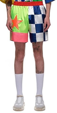 - Shorts Boxers de seda estampados multicolor con diseño de cuadros y estrella de la colección Primavera/Verano 2020 de Walter Van Beirindonck.