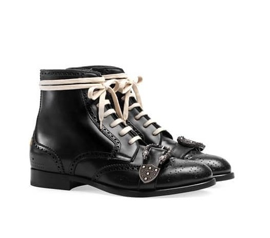 - Botines de cuero brillante con hebilla y cordones de la colección Otoño/Invierno 2020 «Queercore» Hombre de la línea Gucci
