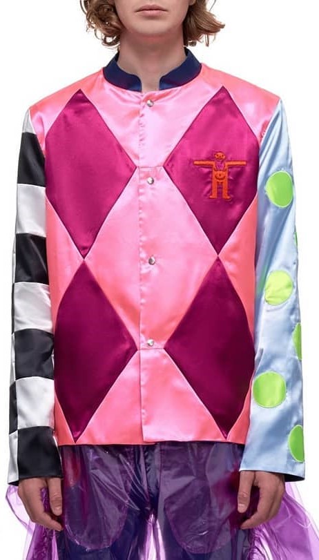 - Chaqueta con diseño de rombos multicolor en seda de la colección Primavera/Verano 2020 de Walter Van Beirendonck.