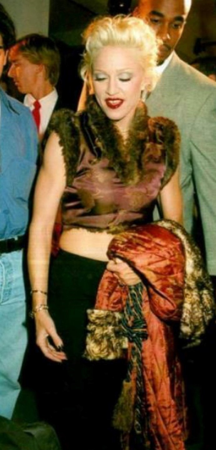 Madonna, se hallaba vestida por Jean-Paul Gaultier, con una falda de terciopelo negra larga y un top sin mangas de seda estilo oriental con piel en cuello y hombros. Ubicada en primera fila y rodeada de sus compañeros Keshishian y Meisel se la vio algo molesta al tener que abandonar el lugar rápidamente. El desfile llevaba ya dos horas de atraso y la estrella tenía que cumplir con el compromiso de una entrevista televisiva. Sin más, se retiró sin poder ver el espectáculo.
