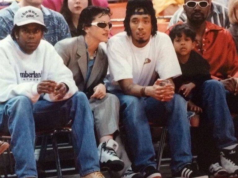 Madonna asiste al partido de la NBA en el «Miami Arena», junto a su guardaespaldas B.O.B Izzard e Ingrid Casares.