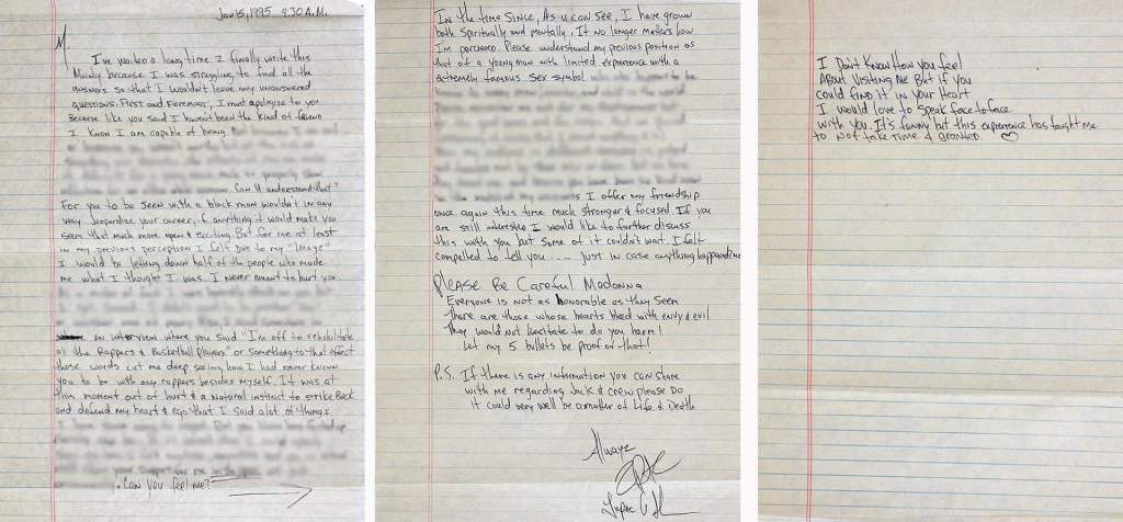 Fragmento de la carta de Tupac Shakur a Madonna (1995)