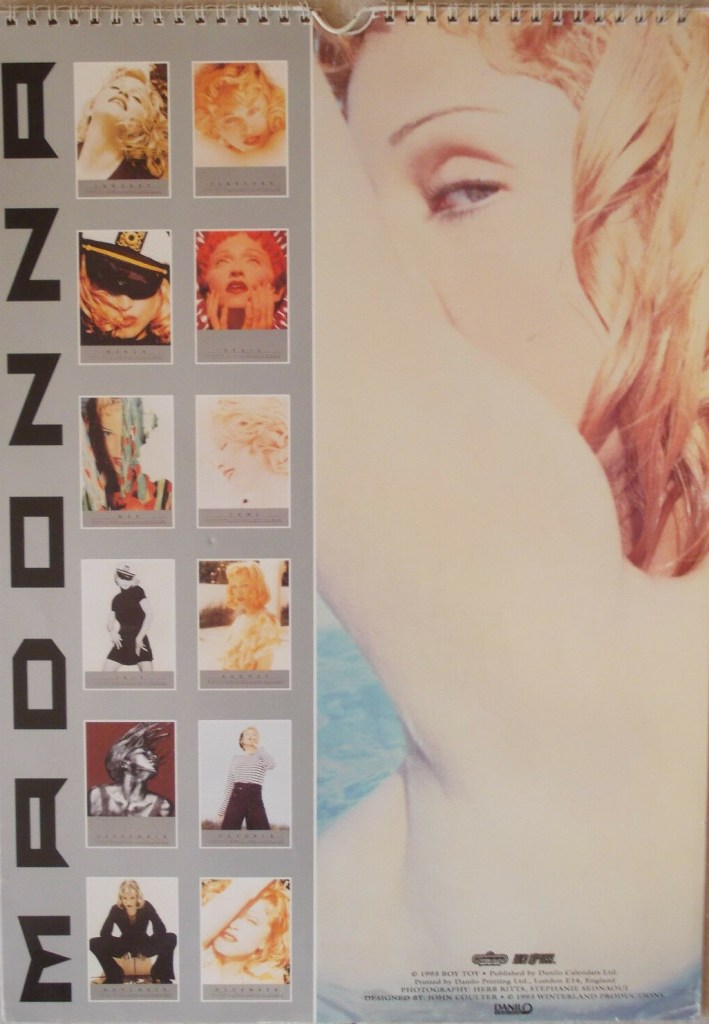 En el segmento memorabiblia de cada año, comenzamos como siempre con el calendario oficial 1994. Producido por la compañía inglesa Danilo en conjunción con Boy Toy Inc., el fabuloso calendario sigue el mismo diseño y estructura que las ediciones de años previos. En formato vertical de 16″ x 12″ incluye 12 impresionantes fotografías de Herb Ritts tomadas en 1993 para la promoción de «The Girlie Show» y el single «Rain», además de dos stills del videoclip «Fever».
