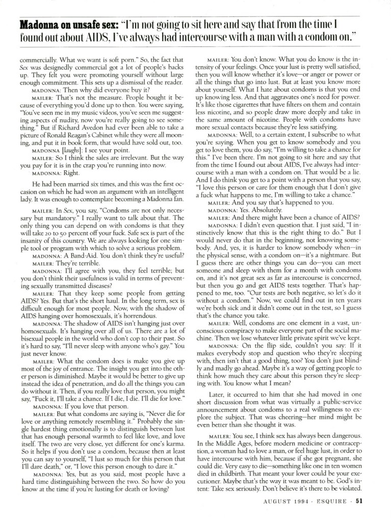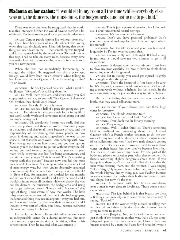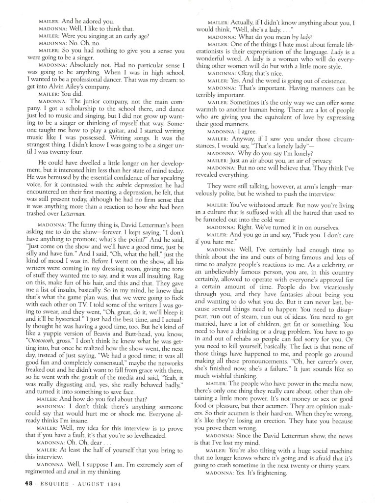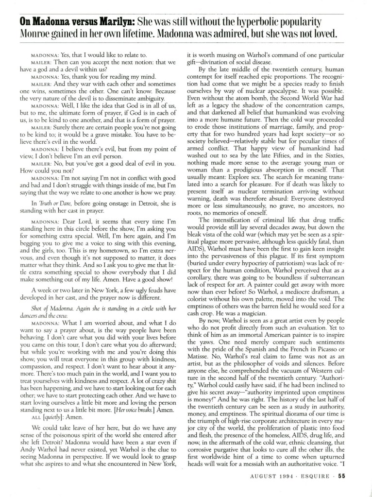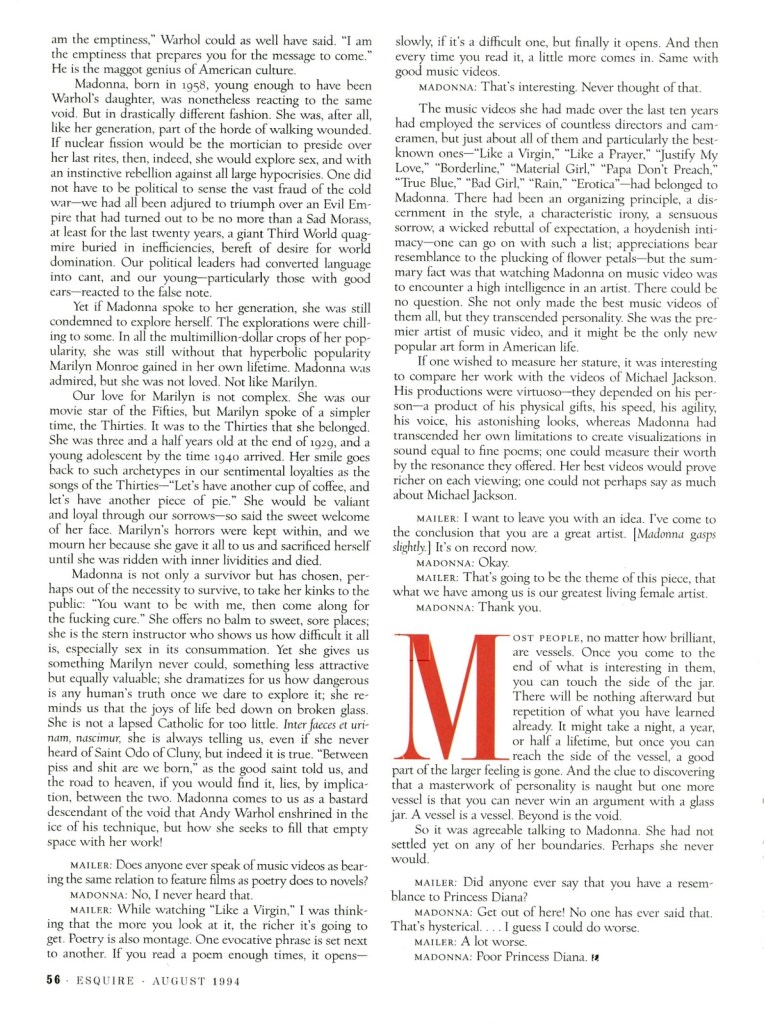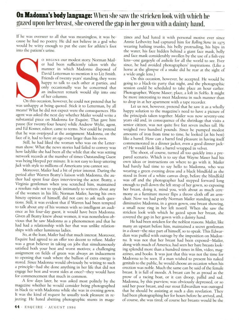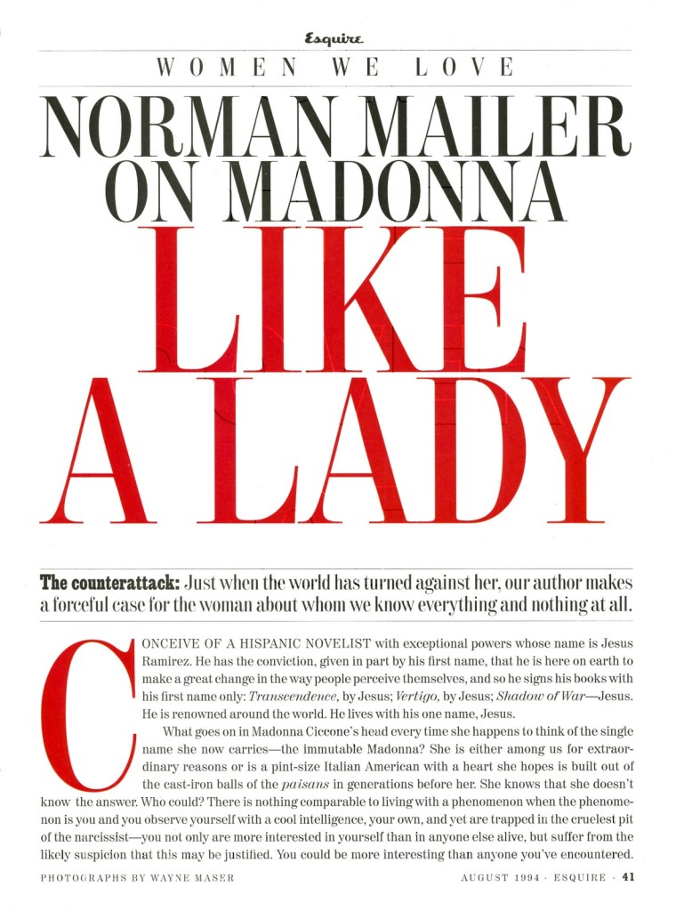 - TÍTULO: «Norman Mailer on Madonna: Like a Lady»