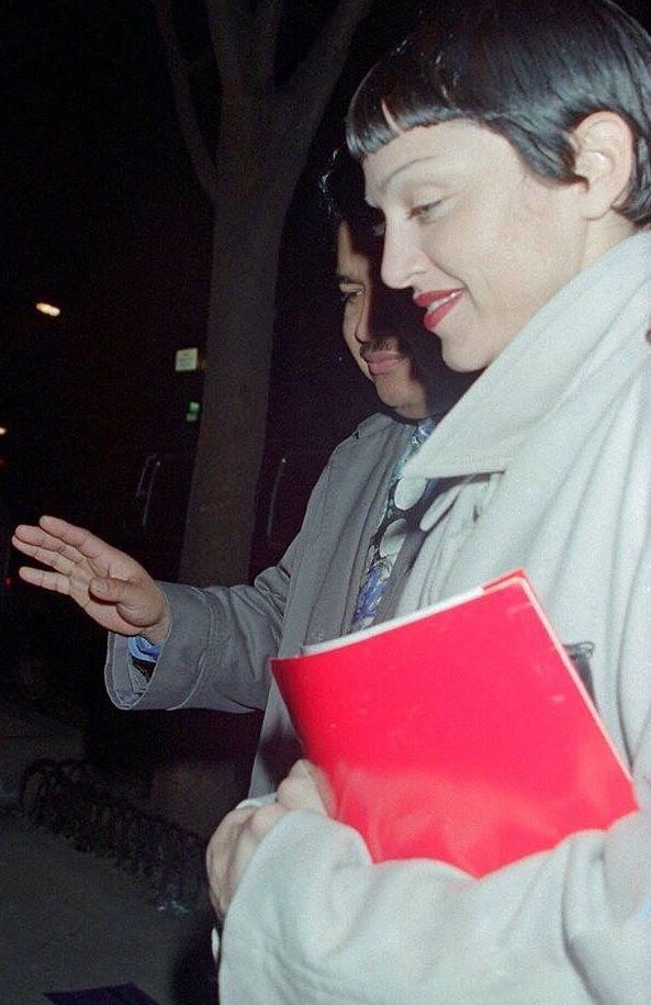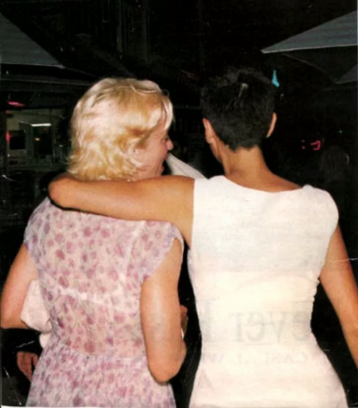 Madonna e Ingrid Casares captadas por paparazzis a la salida del club «Ajax» ubicado en la Av. Washington en South Beach Miami, el viernes 09 de Abril de 1994.
