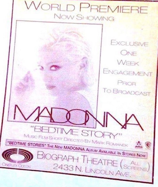 - Previo a su estreno en la televisión, el video tuvo una presentación especial en varios cines de la cadena Odeon Cineplex el 10 de Marzo, en Santa Monica, California; en el Broadway Cinemas en Manhattan, en el Chelsea Theatre en Chicago y en el Biograph Theatre de Illinois. De esta manera, varios espectadores pudieron ver el video de manera anticipada y con una calidad extraordinaria. Se había programado que el clip se pasara antes de cada estreno pero esto no pudo llevarse a cabo debido al alto costo del proyecto. A pesar de ser una temporada baja para los cines, Freeman Fisher, director de la cadena Odeon, comentó que la presentación del video ayudó a levantar la venta de entradas: «durante cuatro minutos, la audiencia pudo ver imágenes impactantes con una producción de primera clase. No era simplemente otra artista más haciendo playback».