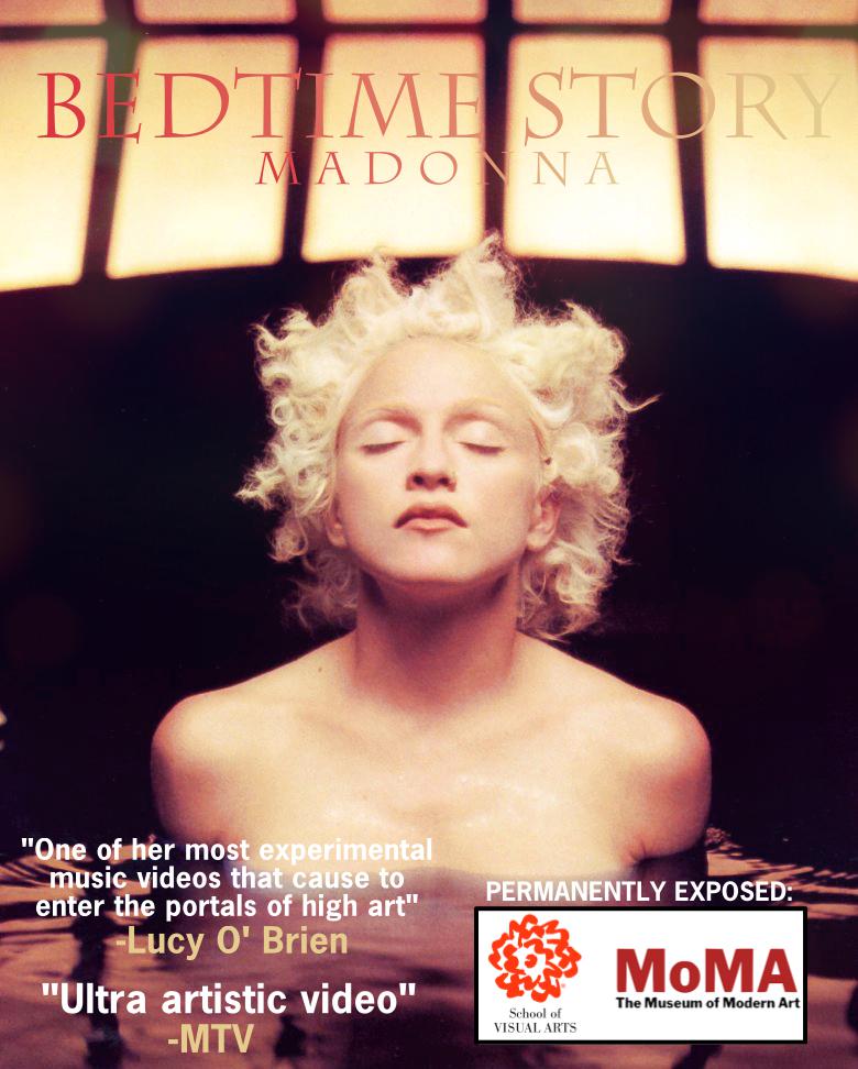 «Mi video ‘Bedtime Story’ estuvo completamente inspirado por todas las pintoras surrealistas femeninas como Leonora Carrington y Remedios Varo. Hay un plano en el que mis manos están en el aire y las estrellas están girando alrededor de mí; y yo flotando por un pasillo con mi pelo detrás, los pájaros volando fuera de mi túnica abierta. Todas esas imágenes eran un homenaje a las pintoras surrealistas femeninas; hay un poco de Frida Kahlo allí también». Madonna