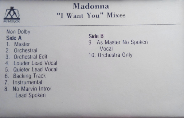 - Hay dos versiones oficiales de «I Want You» de Madonna que aparecen en el disco «Something to Remember», la versión original con una duración de 06:23 minutos y la versión acústica (sólo con voces y cuerdas) de 07:06 minutos. Además Junior Vazquez y Warren Diggs, realizaron varios remixes del tema, pero como el single nunca se lanzó de manera oficial, éstos también quedaron como promocionales.