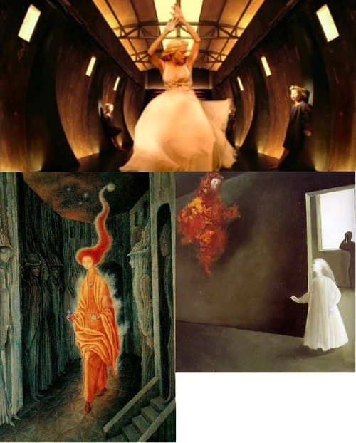 Luego vemos en otras escenas una mujer sentada mirando al cielo, otra vez la búsqueda de Dios, al girar vemos dos grandes cicatrices en su espalda: es un ángel caído al cual le fueron arrancadas las alas. En unas escenas vemos a hombres en trajes típicos girando. Se les llama derviches y su danza es el remolino sufí. Los derviches suelen ser varones que viven para ganar humildad y conocimiento al respecto. No pueden poseer casas, propiedades o cualquier cosa que implique dinero. El remolino sufí se ha vuelto bastante popular, aunque se suponía que no debía serlo. Su danza consiste en girar hasta llegar al éxtasis religioso. Esta escena fue además prácticamente replicada con exactitud en el film «The Fall» (2006) del director indio Tarsem Singh.