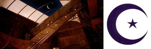 Hay una escena en donde podemos ver el cielo nocturno desde un techo abierto, en el mismo se observa claramente una media luna con una estrella solitaria al costado, representando el símbolo del Islam, que en su cultura significa el poder de viajar a través de las galaxias.
