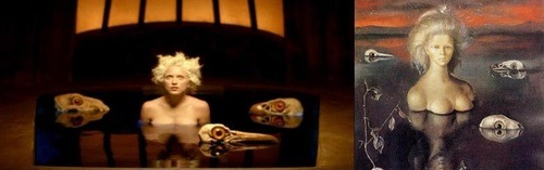 Artista surrealista nacida en Inglaterra, gran amiga de Remedios Varo. En la escena en que Madonna está embarazada se ven dos pavos reales, tal vez tomados de la pintura «Peacocks of Chen» (1978) y cuando ella da a luz a las palomas, podemos ver claras referencias de la obra «The Giantess» (1950).