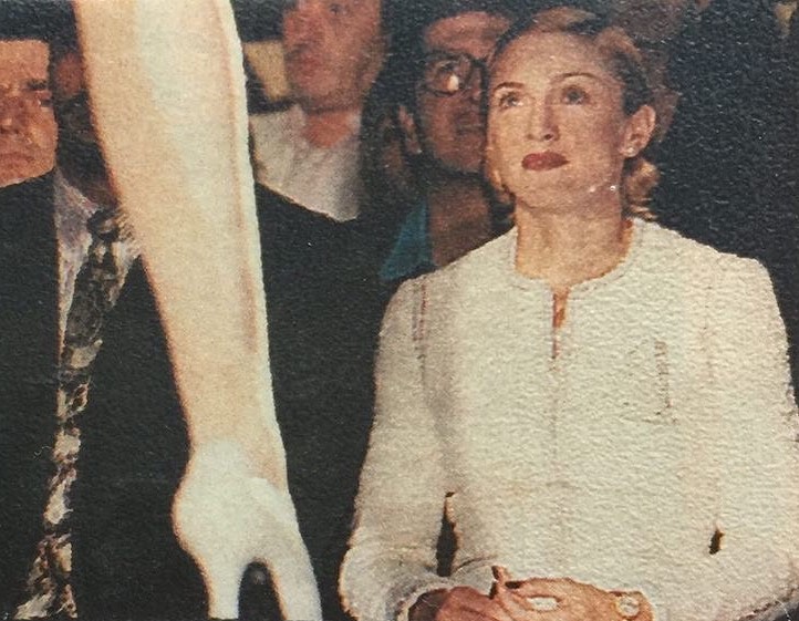 Madonna lució un traje de dos piezas de falda y saco color marfil bordado con cristales y pedrerías de la colección que estaba presenciando en ese momento. Luego del desfile, Madonna y todo el grupo concurrieron a la exclusiva fiesta de cierre realizada en el club «Chez Regine».