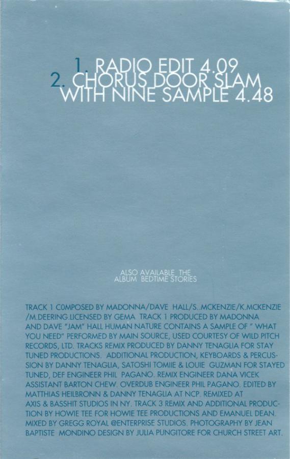 - «Human Nature» es el cuarto y último single del disco «Bedtime Stories» lanzado al mercado el 06 de Junio de 1995.