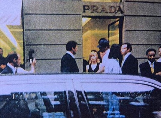 Madonna, Carlos León, su amiga Marjorie Gross y su perra Chiquita, aprovecharon su estadía en la mansión de Versace, «Villa Fontannelle» ubicada en la zona del Lago de Como (a una hora en coche de Milán, donde la cantante estaba pasando unos días de descanso), para acercarse a la ciudad y realizar compras en «Atelier Versace» y «Prada».