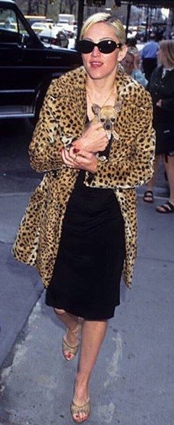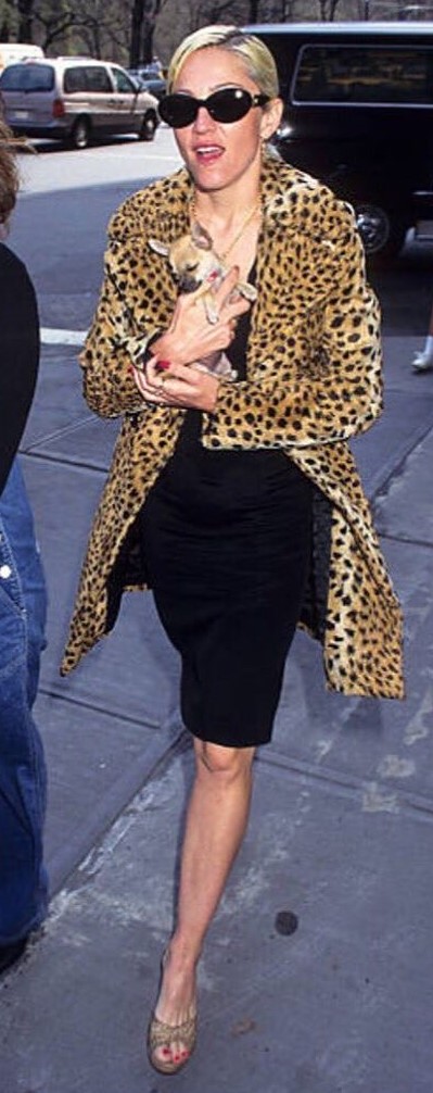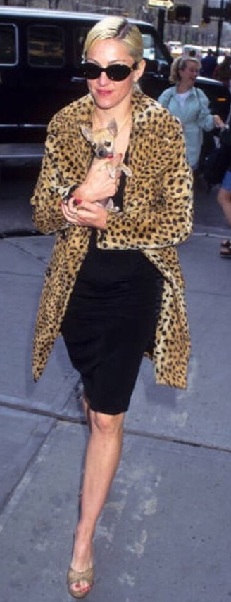 Madonna usando su otro tapado (ya conocido de Dolce & Gabbana) se la vio salir de su apartamento en el Upper West Side de Manhattan con su novio Carlos León y otra ocasión con su perra chihuahua «Chiquita». Luego vemos en algún evento junto a Chris Isaac y sí, ¡otra vez con el mismo tapado!
