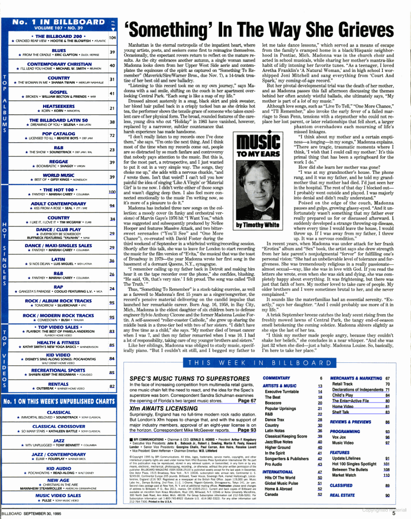 LA REVISTA «BILLBOARD» PRESENTÓ UNA ENTREVISTA EXCLUSIVA PARA PROMOCIONAR SU COLECCIÓN DE BALADAS «SOMETHING TO REMEMBER», CENTRÁNDOSE PRINCIPALMENTE EN LA CONEXIÓN DE BALADAS INTROSPECTIVAS Y LA PÉRDIDA DE SU MADRE