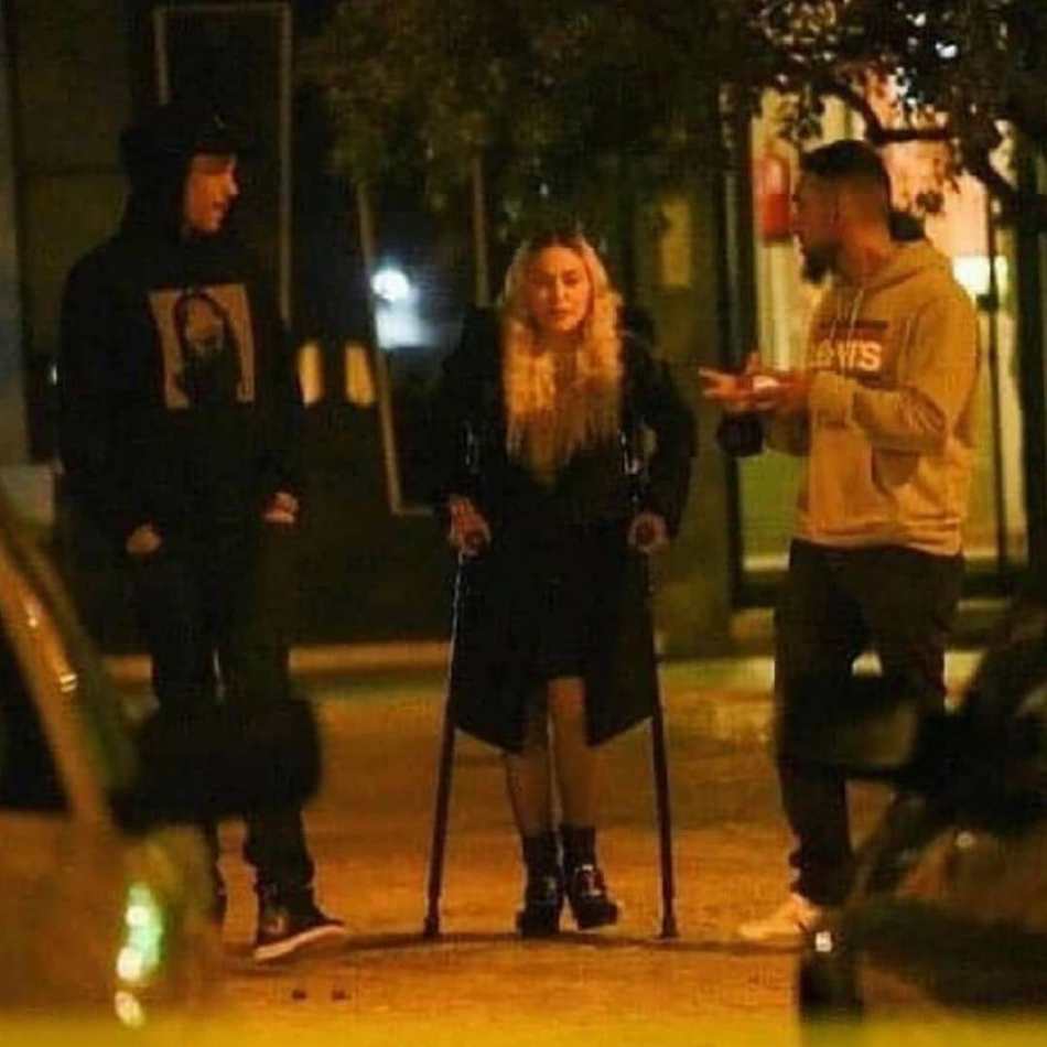 Luego de haber pasado los últimos dos meses en Los Angeles trabajando junto a la guionista Diablo Cody para la biopic que tratará sobre su vida y tras el festejo de los 15 años de su hijo David Banda, Madonna ha decidido regresar a Lisboa luego de 7 meses de ausencia. La noche del sábado 03 de Octubre, se la vio salir del restorán «Wasabi Papi» acompañada de dos amigos y de su novio Ahlamalik Williams. Podemos notar, que la cantante aún sigue usando muletas para caminar, lo que nos hace pensar que sus lesiones aún no están del todo recuperadas.