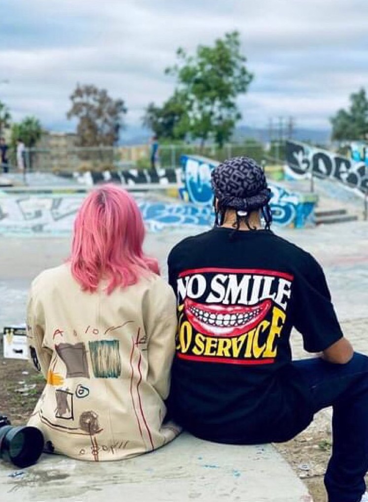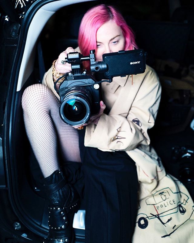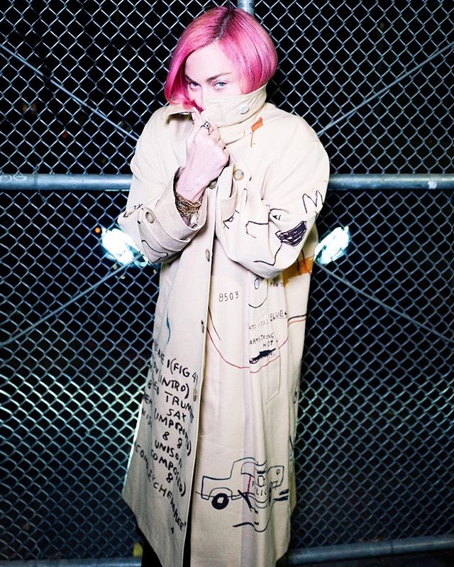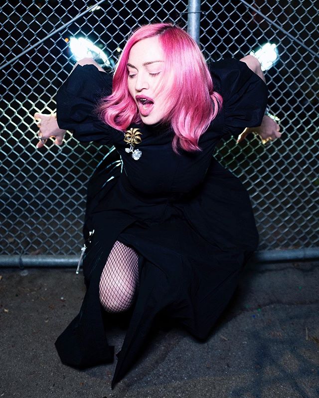 Luego de algunas fotos subidas por la propia estrella a sus redes sociales en donde la veíamos posar en el jardín de su mansión en Los Angeles o muy al estilo rockera en un coche negro y después de realizar algunos posteos sobre las elecciones en Estados Unidos, Madonna nos ha vuelto a regalar algunas imágenes con mucha producción. Otra vez, el patrón de colores se repite: indumentaria negra que contrasta maravillosamente con su cabello rosa chicle (que la favorece mucho por cierto). Nuevamente, el encargado de las imágenes fue el fotógrafo Ricardo Gomes, el estilismo por Mae Couture y el peinado por Andy LeCompte. Madonna se fotografió en exteriores, en unas pistas de skate y acompañada de su joven novio, el bailarín Alhamalik Williams. En un video de la producción fotográfica, Madonna escribió: «Hola…hola…hola…huele a espíritu adolescente» haciendo claramente referencia a la canción del grupo Nirvana, que en este caso acompañó el video, pero con una versión interpretada por Patti Smith.