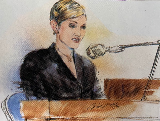 Madonna llegó rodeada de un extremo servicio de seguridad, de hecho no existen prácticamente fotografías del juicio, más que un dibujo oficial realizado durante el proceso. El proceso se llevó a cabo en la Sala 116 del Edificio de la Corte Criminal de Los Angeles (el mismo recinto en donde se llevó a cabo el juicio a O.J Simpson). Madonna asistió muy seria y se la veía vulnerable e incómoda de tener que compartir el mismo salón con su acosador. Llegó vestida de manera muy clásica con un traje oscuro y falda hasta debajo de las rodillas. Se mostró algo molesta y emotiva por tener que testimoniar personalmente, alegando que se sentía enferma y muy intimidada. Durante su declaración de casi 90 minutos, Madonna tuvo que soportar la mirada amenazante de Hoskins quien se hallaba a tan sólo un par de metros de ella. La cantante trató de evitar contacto visual en todo momento y dijo que su presencia en esa sala no hacía más que cumplir las fantasías de su atacante. El abogado de Hoskins, John Myers fue feroz contra Madonna llamándola mentirosa y hasta insinuando que su fama y su postura de estrella justificaban los actos violentos de su defendido. Myers dijo a la corte: «la señorita Ciccone ingresa a esta Corte y el problema es que ella cree que es la estrella del show; y lo no es, la jueza es la estrella. Ella no puede dejar de actuar, no sabe cuándo dejar de actuar. ¿Dónde se cree que está?».
